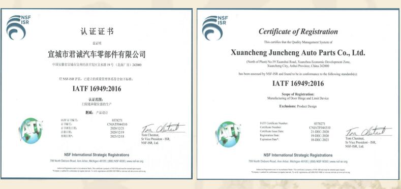 宣城市君誠汽車零部件有限公司是專業(yè)生產(chǎn)各類汽車鉸鏈及限位器的民營企業(yè),總投資3000余萬元,位于宣城高新技術(shù)產(chǎn)業(yè)開發(fā)區(qū),緊鄰宣廣、宣蕪高速公路,地理位置優(yōu)越,交通便捷。是“國家高新技術(shù)企業(yè)、知識產(chǎn)權(quán)貫標(biāo)企業(yè)、安徽省商標(biāo)示范企業(yè)、安徽省科技型企業(yè)”,已獲得國家發(fā)明專利18項,實(shí)用新型發(fā)明專利4項。主要從事各類汽車門鉸鏈及限位器的設(shè)計、研發(fā)、生產(chǎn)、和銷售,具有專業(yè)的合作團(tuán)隊。自2015年正式生產(chǎn)至今,已形成一整套完整的生產(chǎn)、質(zhì)量管理體系。并已通過國家強(qiáng)制性產(chǎn)品認(rèn)證“3C”體系認(rèn)證及IATF16949國際質(zhì)量體系認(rèn)證。在生產(chǎn)設(shè)備上,公司擁... 【查看詳細(xì)】